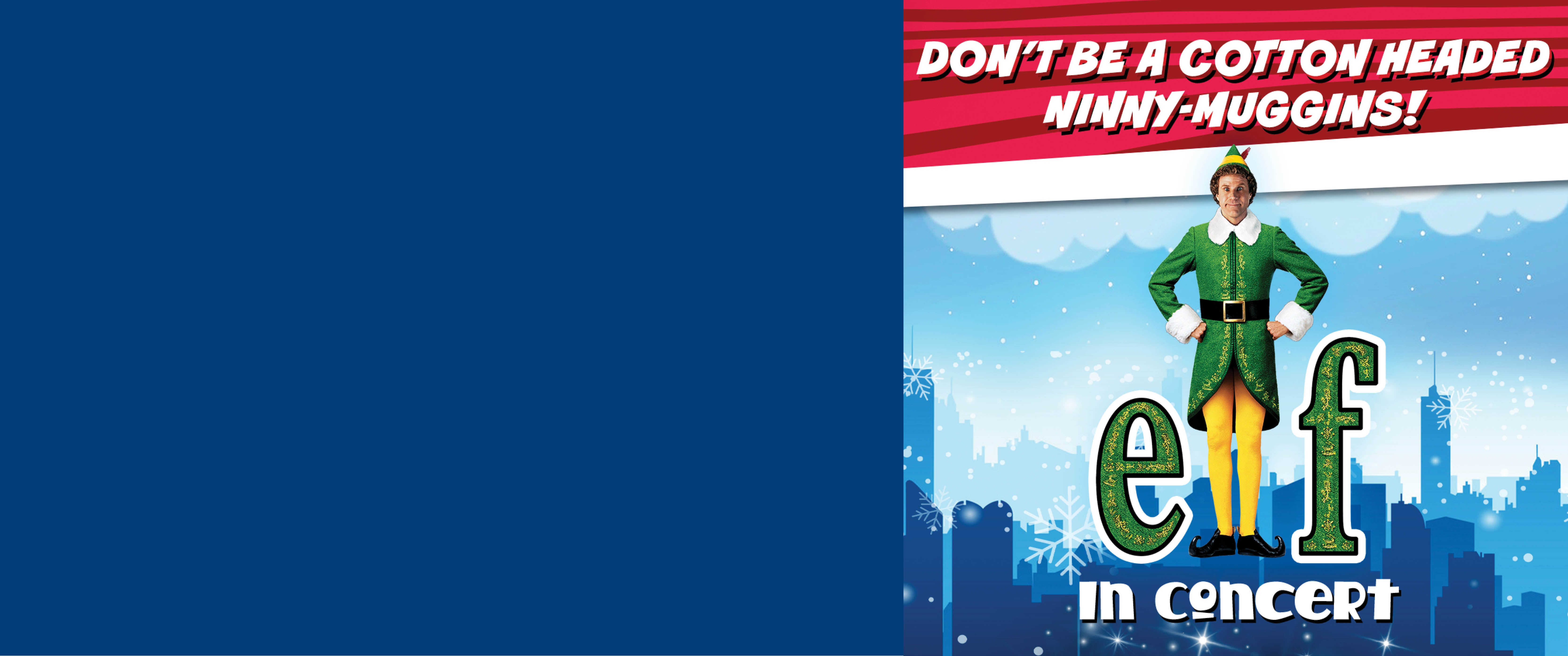 Buddy was accidentally transported to the North Pole as a toddler and raised to adulthood among Santa’s elves. Unable to shake the feeling that he doesn’t fit in, the adult Buddy travels to New York, in full elf uniform, in search of his real father. This holiday season, relive this heartwarming holiday classic on a giant screen as every note of John Debney’s wonderful score is played live to picture in: Elf in Concert!